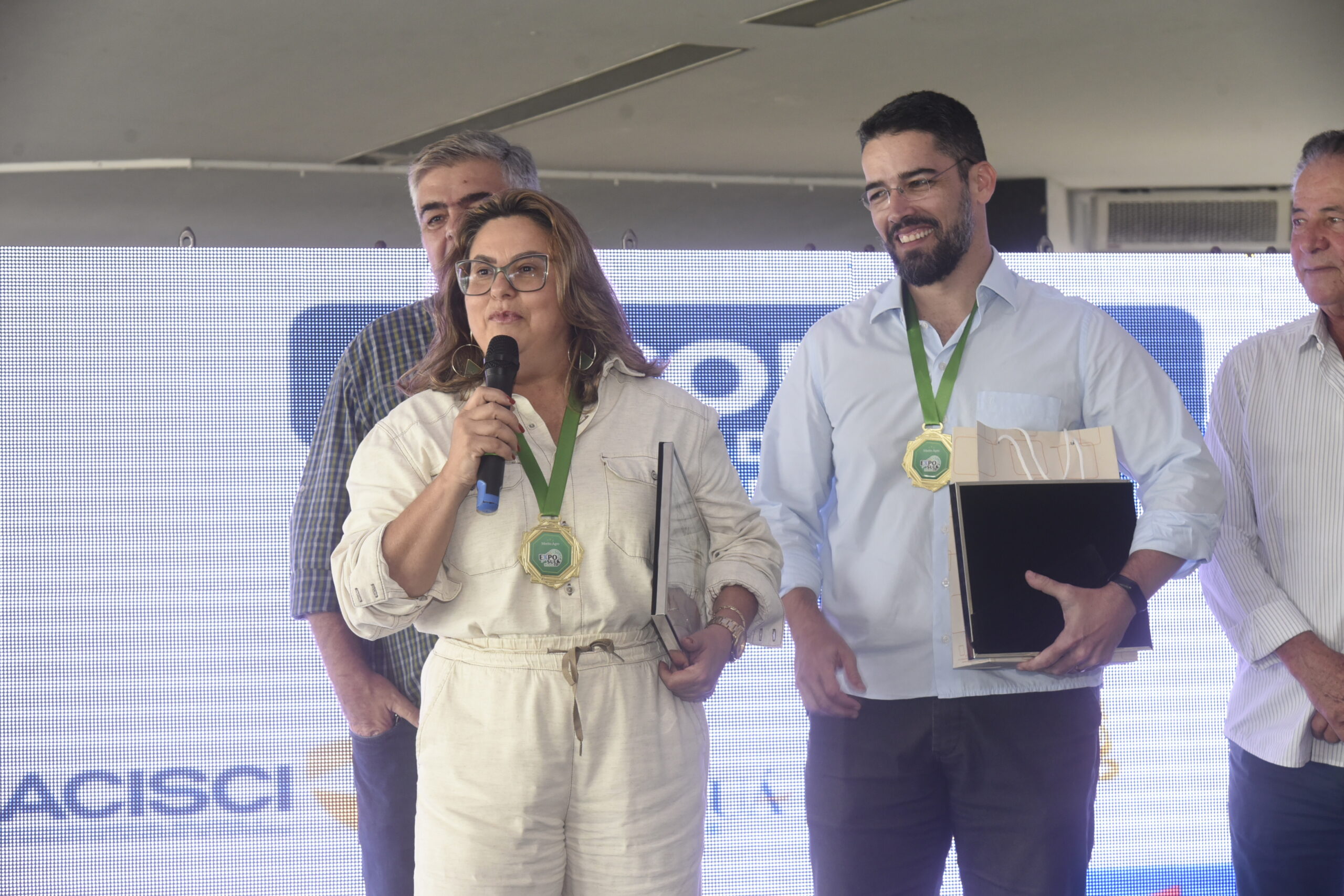 Receba as principais notícias no seu WhatsApp! clique aquiDurante o evento, os organizadores da Exposul Rural, Wesley Mendes (presidente do Sindicato Rural de Cachoeiro de Itapemirim), Pedro Paulo de Oliveira Martins e Zaira Andrade (Clube Capixaba), homenagearam três pessoas que se destacaram por suas contribuições para o agronegócio: a jornalista Kátia Quedevez (Revista Safra), o presidente da Cacal Domingos Piassi, e o prefeito de Cachoeiro de Itapemirim, Victor Coelho, que receberam a medalha de Mérito Agro.