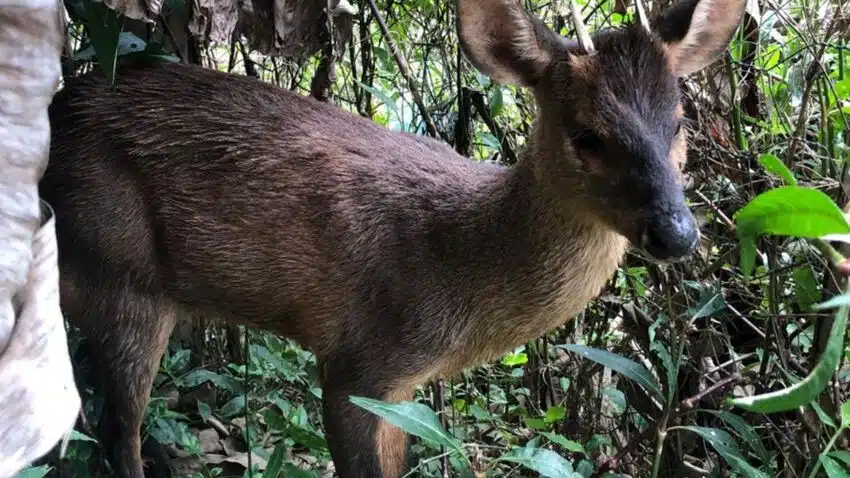 O veado foi resgatado de ataque de cães em uma propriedade rural no distrito de Castelinho (Foto: Reprodução | Prefeitura de Vargem Alta)