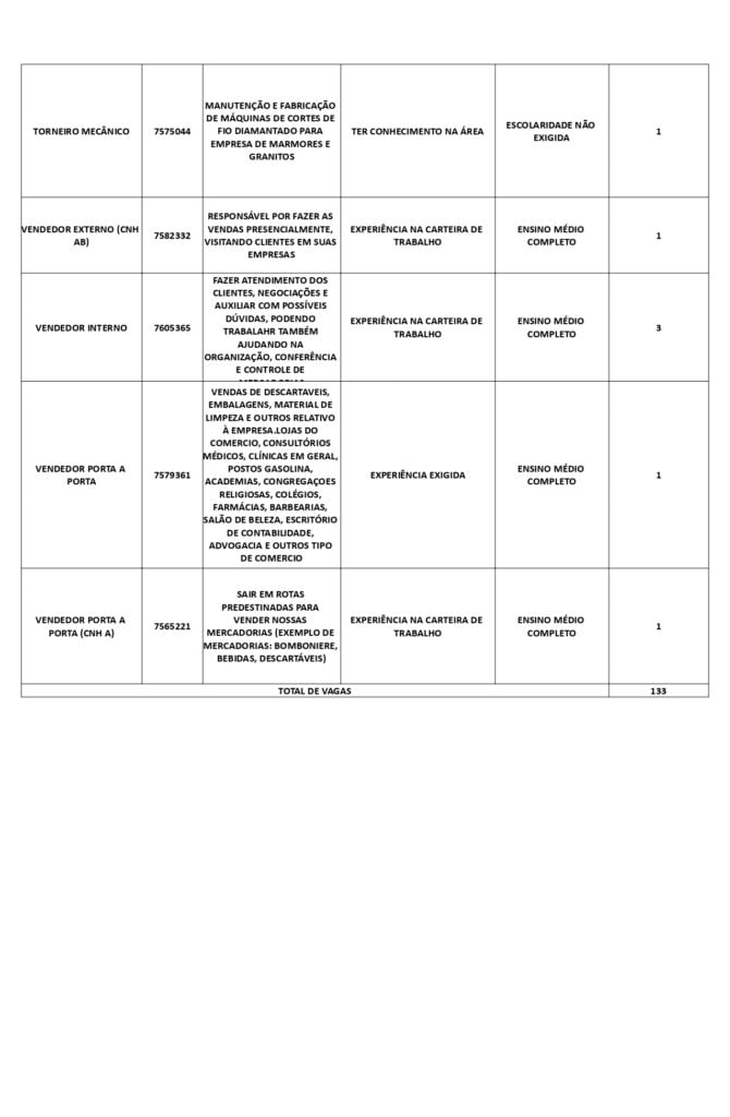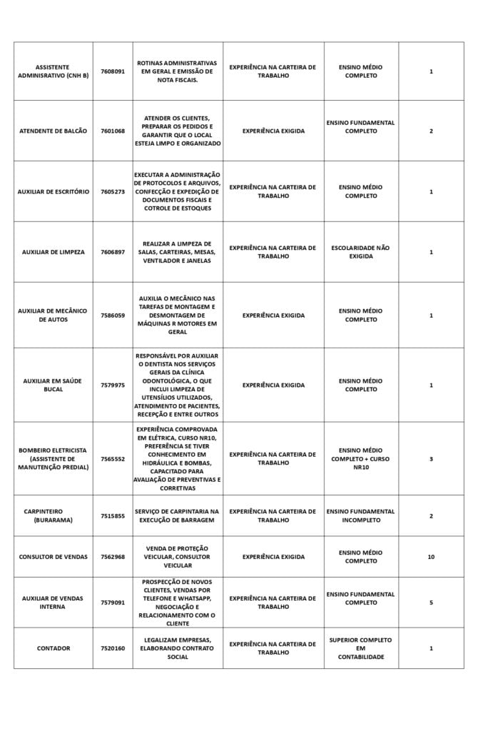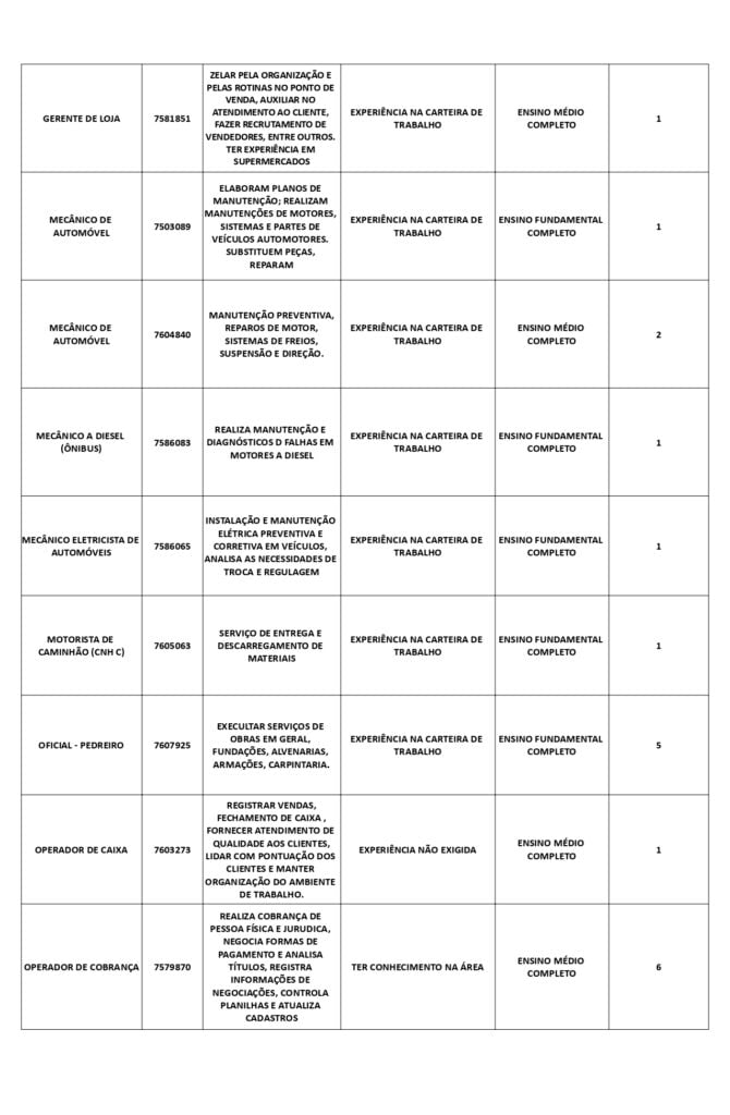 As oportunidades de emprego são para diversos cargos e níveis de escolaridade