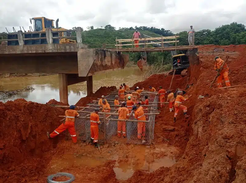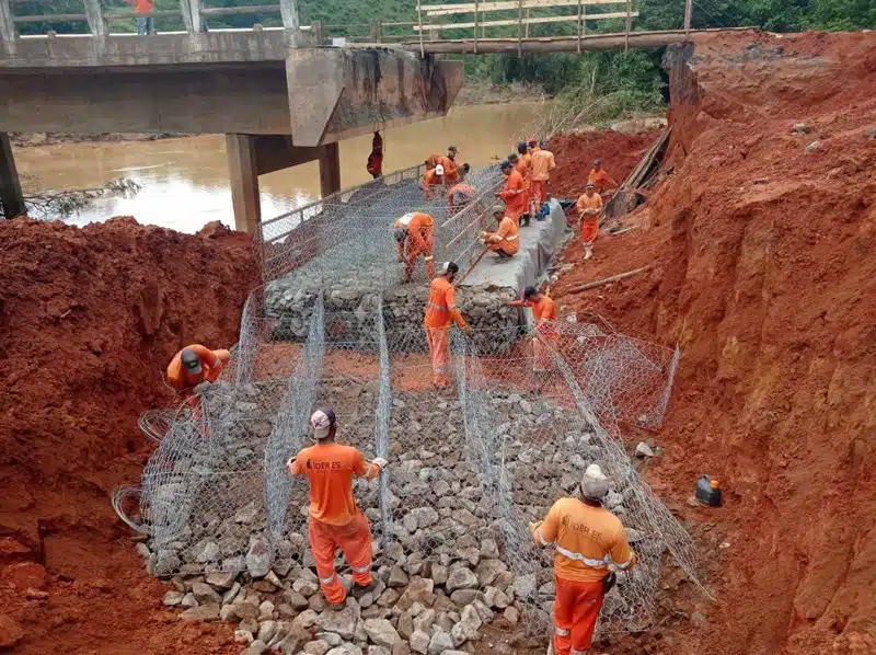 Receba as principais notícias no seu WhatsApp! clique aquiAs fotos abaixo mostram o local destruído pelas chuvas, os engenheiros do DER fazendo uma visita técnica, os funcionários do órgão atuando na reconstrução e a ponte pronta e liberada.