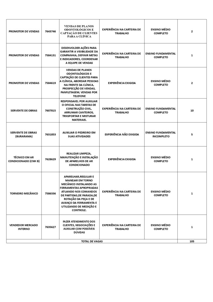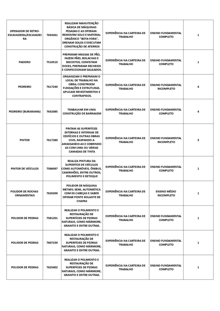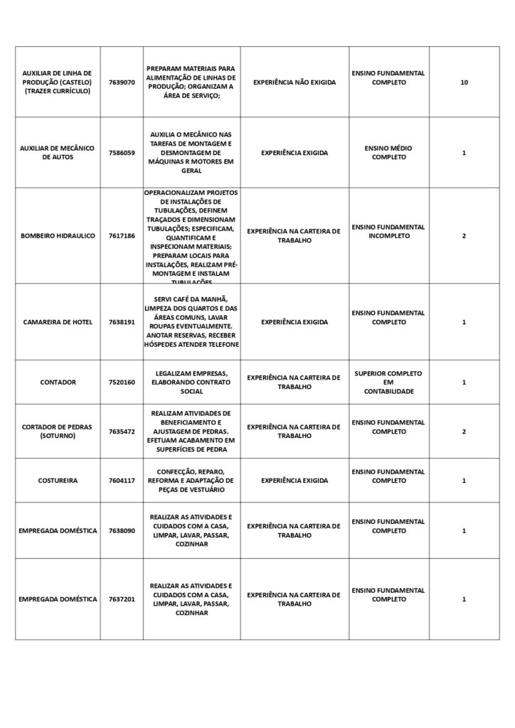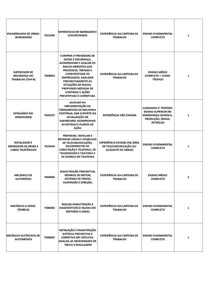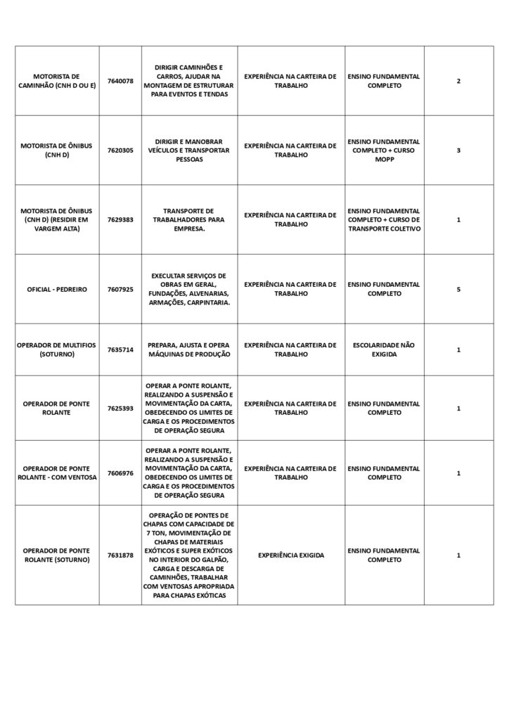 As oportunidades de emprego são para diversos cargos e níveis de escolaridade
