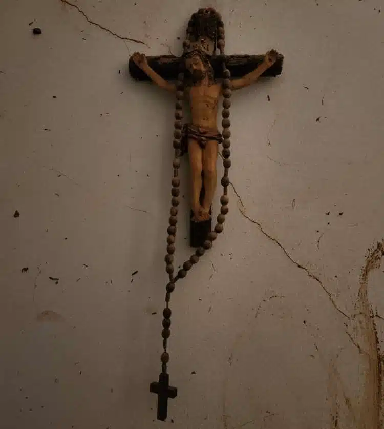 “Quero partilhar essa foto com vocês pelo seguinte: tudo foi destruído em nossa casa paroquial; tudo caiu no chão, mas a imagem de Nossa Senhora das Graças ficou intacta na mesma posição. Para mim, é um sinal de que Maria esteve sempre de pé intercedendo por todos nós. Só gratidão”.