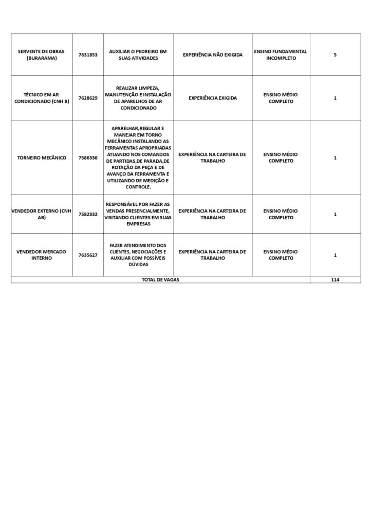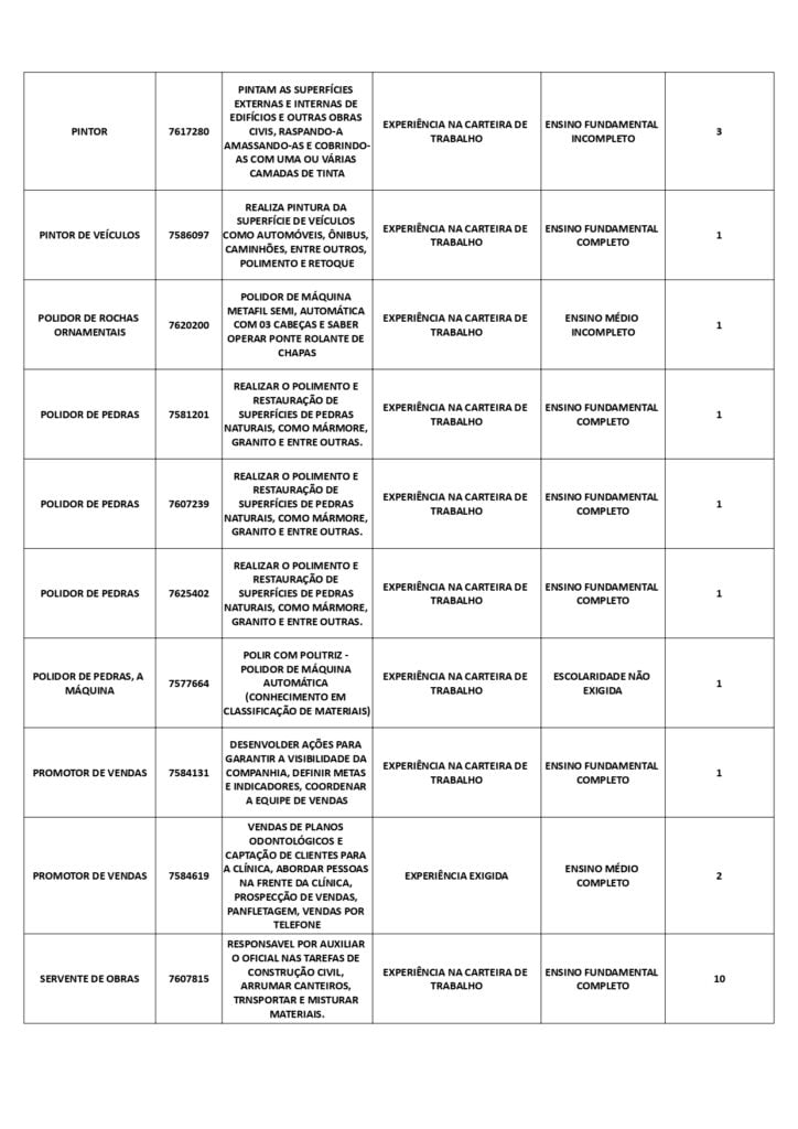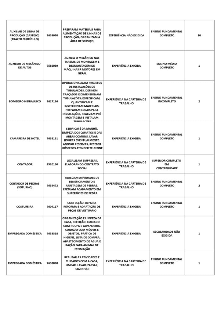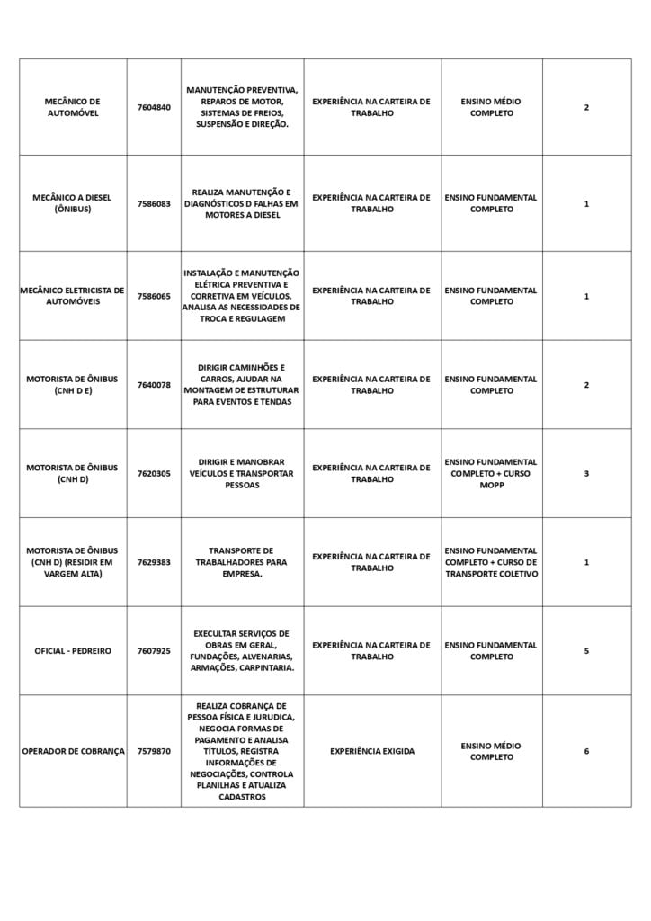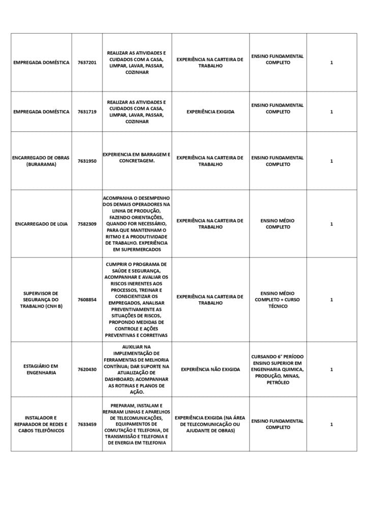 As oportunidades de emprego são para diversos cargos e níveis de escolaridade