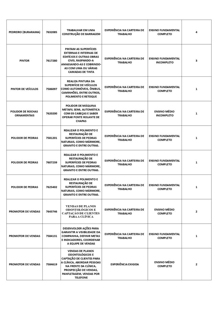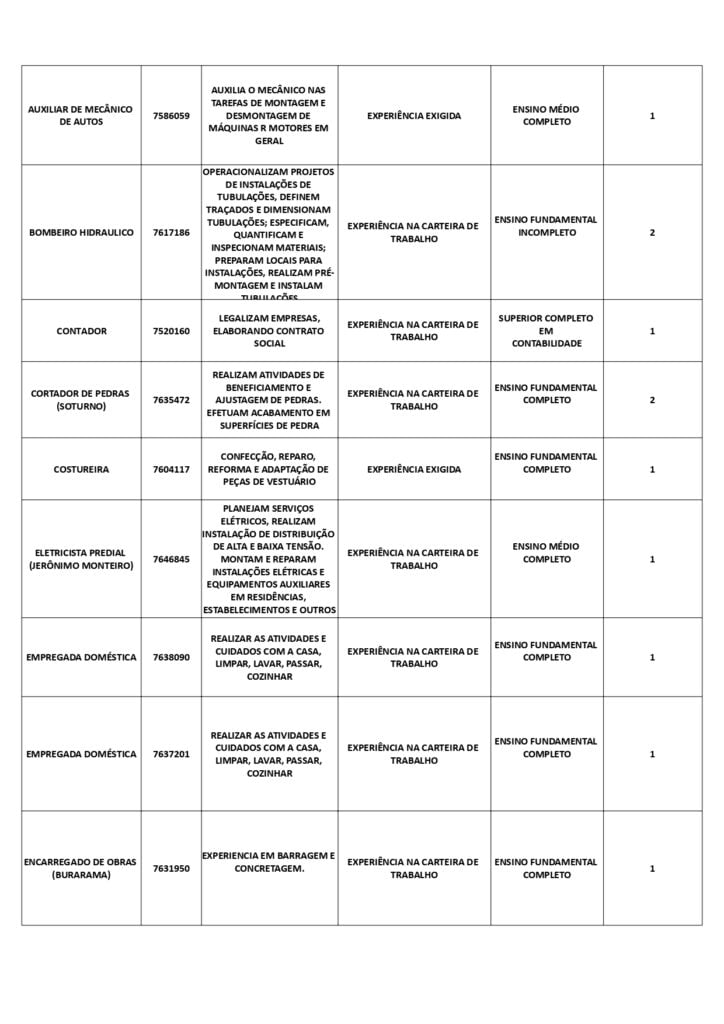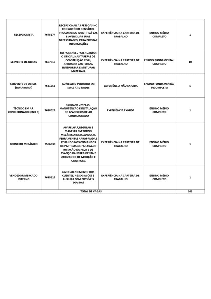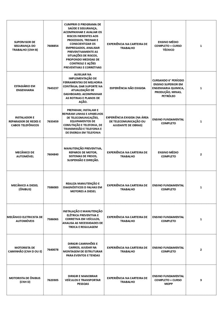 As oportunidades de emprego são para diversos cargos e níveis de escolaridade