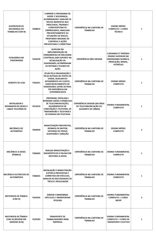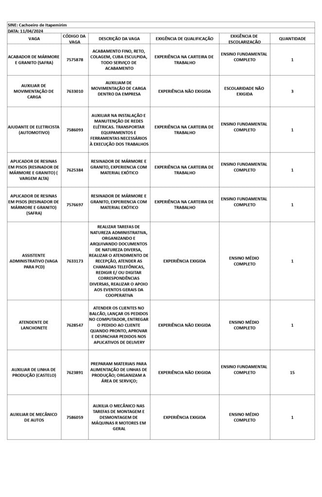 As oportunidades de emprego são para diversos cargos e níveis de escolaridade e para cidades do Sul do ES. No entanto, é preciso fazer um cadastro no Sine Cachoeiro para concorrê-las.