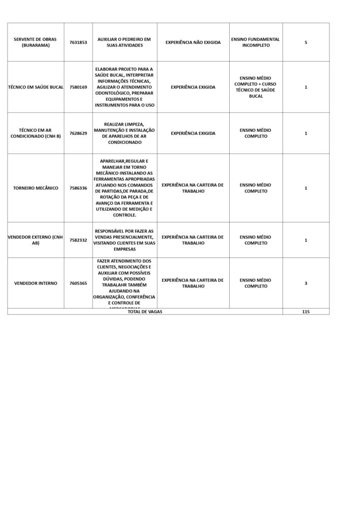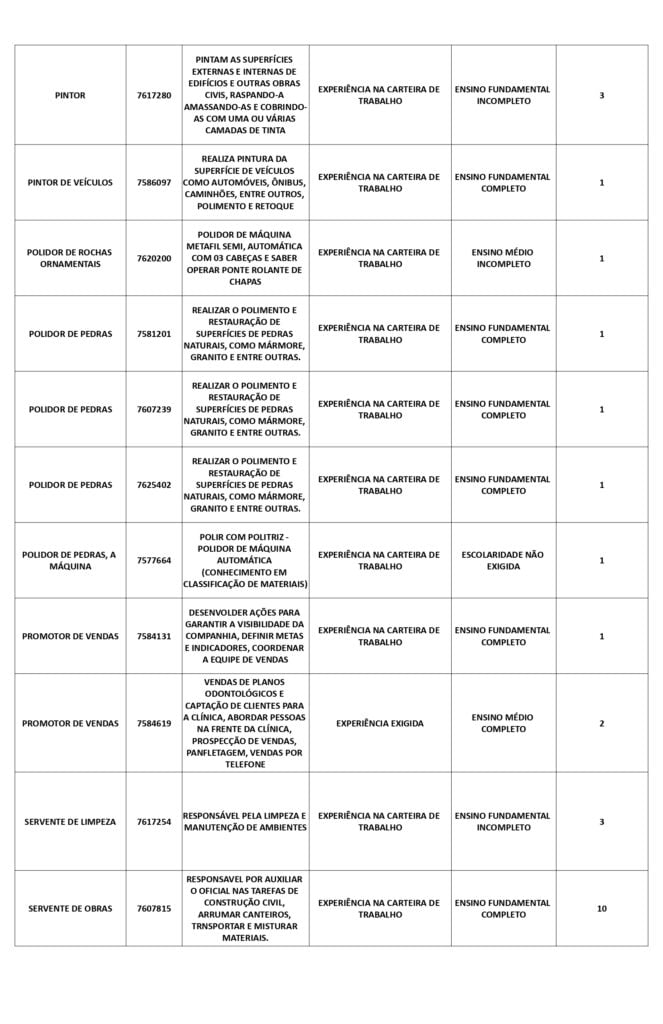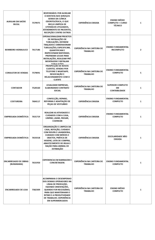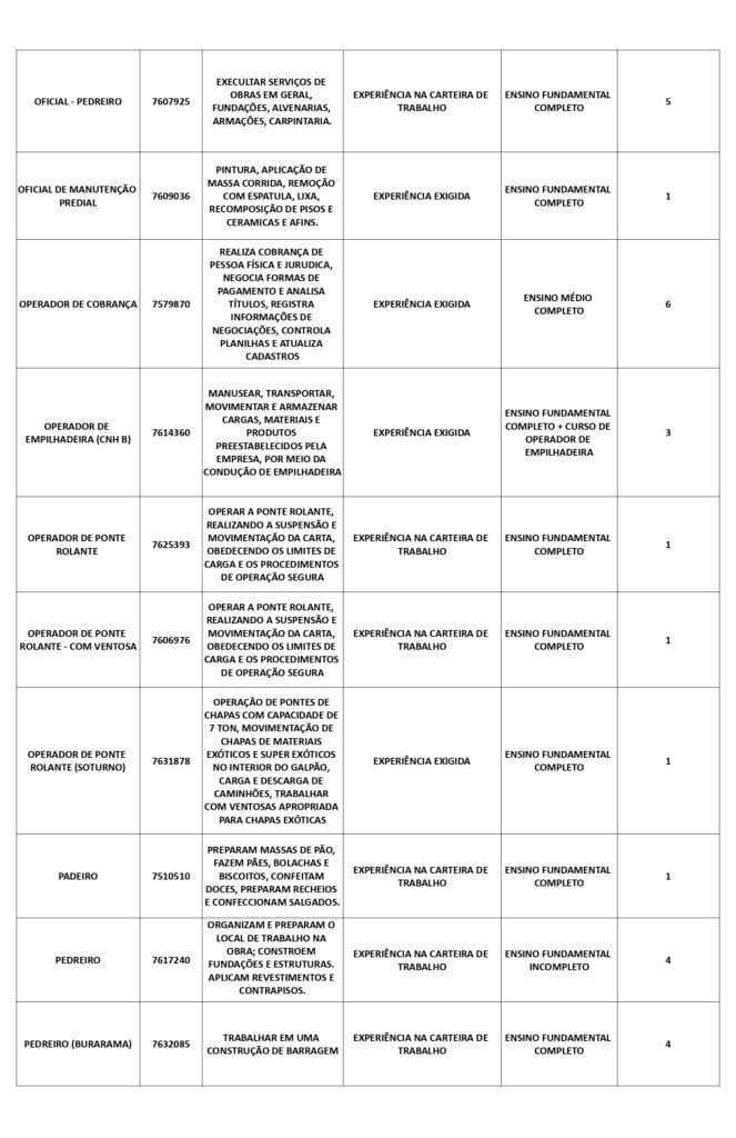 As oportunidades de emprego são para diversos cargos e níveis de escolaridade