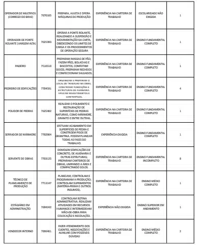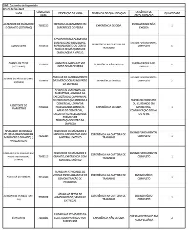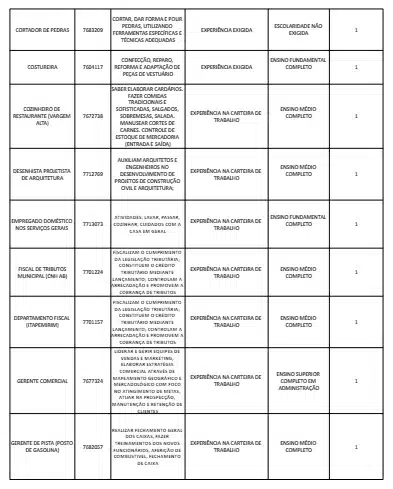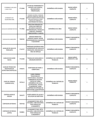 Receba as principais notícias no seu WhatsApp! clique aquiAs oportunidades de emprego são para diversos cargos e níveis de escolaridade e para cidades do Sul do ES. No entanto, é preciso fazer um cadastro no Sine Cachoeiro para concorrê-las.