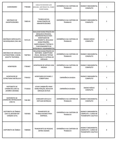As oportunidades de emprego são para diversos cargos e níveis de escolaridade e para cidades do Sul do ES