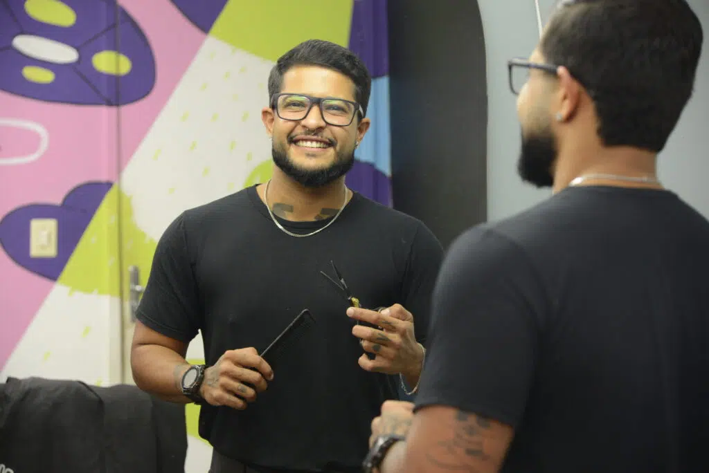 “No início, eu fiquei bem receoso. Por mais que eu tenha visto que era uma barbearia diferente das outras, não me sentia seguro. Com o tempo, fui criando confiança e me aproximando um pouco mais do Julio, tanto na esfera profissional quanto na pessoal. Ter como chefe e referência um homem trans, que tem recortes sociais bem parecidos com os meus, me ajuda a me sentir ainda mais representado. Fico muito feliz que ele esteja conseguindo alavancar outras pessoas”, conta José, que há um ano, além de barbeiro e esteticista, também tem dado aula para jovens em Centros de Referência para Juventude (CRJ) localizados na Grande Vitória.