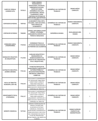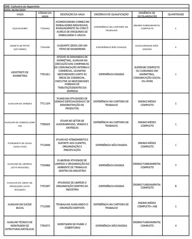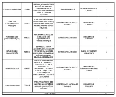 As oportunidades de emprego são para diversos cargos e níveis de escolaridade e para cidades do Sul do ES. No entanto, é preciso fazer um cadastro no Sine Cachoeiro para concorrê-las.