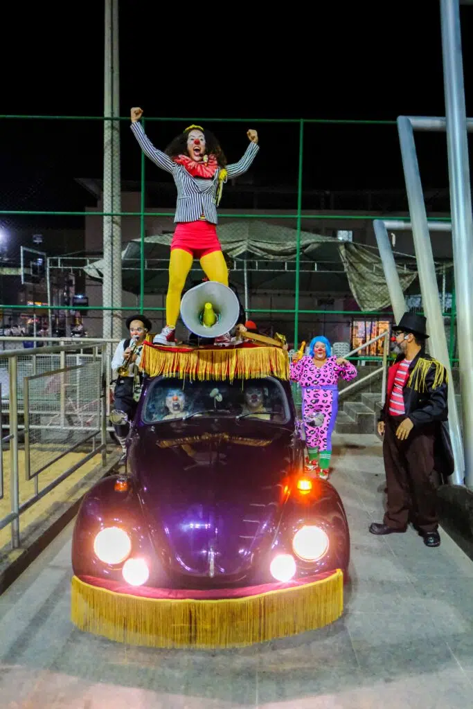 O fusca roxo lotado de palhaços e palhaças do Grupo Árvore volta a circular pelo Espírito Santo neste final de semana!