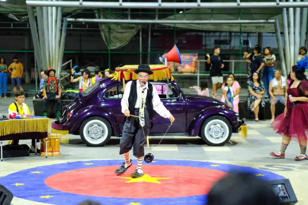 Contemplado por edital da Lei de Incentivo à Cultura Capixaba (LICC), com patrocínio da ArcelorMittal, o fusca roxo lotado de palhaços e palhaças do Grupo Árvore prossegue em circulação, desta vez pelo Sul do Espírito Santo: Mimoso do Sul (22), Atílio Vivácqua (23) e Rio Novo do Sul (24).