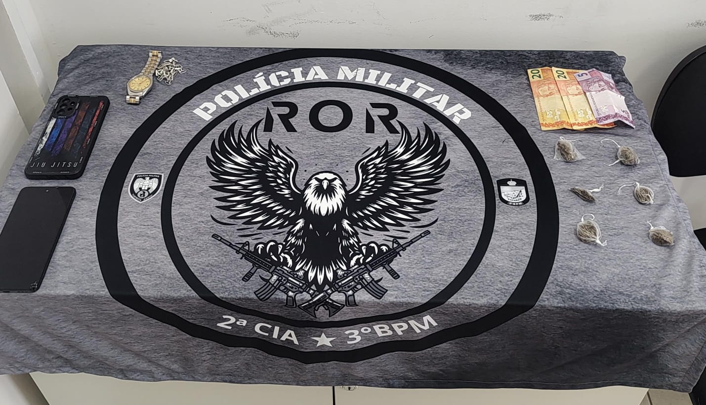 De acordo com a PM, os suspeitos foram abordados em frente a uma residência já conhecida como ponto de tráfico de drogas. Um deles teria tentado fugir ao perceber a presença dos militares, mas foi alcançado. Na casa, foram encontradas seis buchas de maconha e materiais usados para embalar drogas. Já o segundo envolvido alegou que estava no local apenas para comprar entorpecentes para consumo próprio.