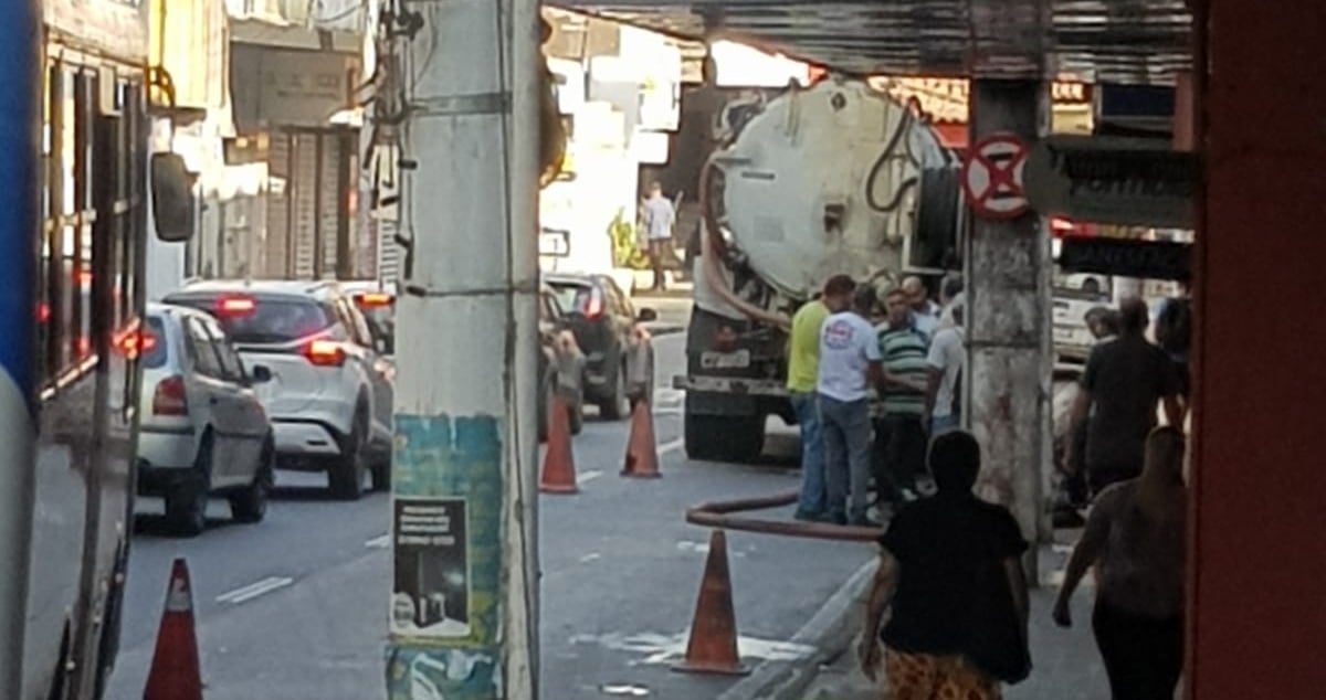 Limpeza de bueiros no Centro de Cachoeiro causa congestionamento e transtornos
