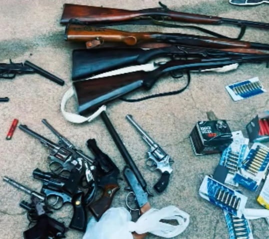 Segundo as informações, os policiais cumpriram mandados de busca e apreensão em Córrego da Liberdade, distrito de Vila Pontões. No local, foram encontradas 16 armas de fogo, incluindo espingardas, revólveres, garruchas e pistolas, além de mais de 270 munições de diversos calibres e dois celulares.