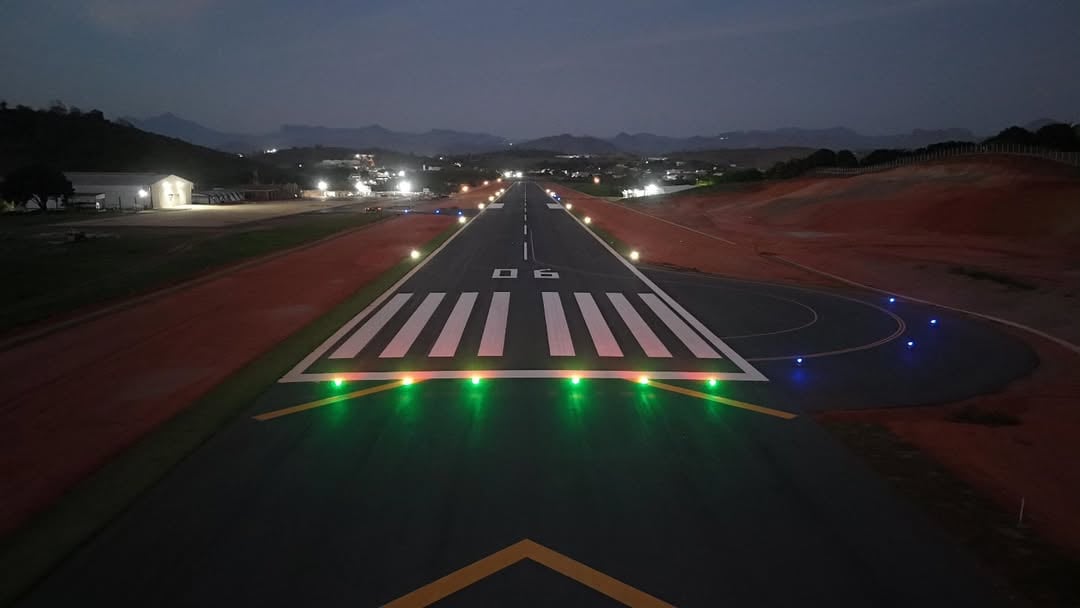 Nova pista iluminada mostra avanço das obras do Aeroporto em Cachoeiro