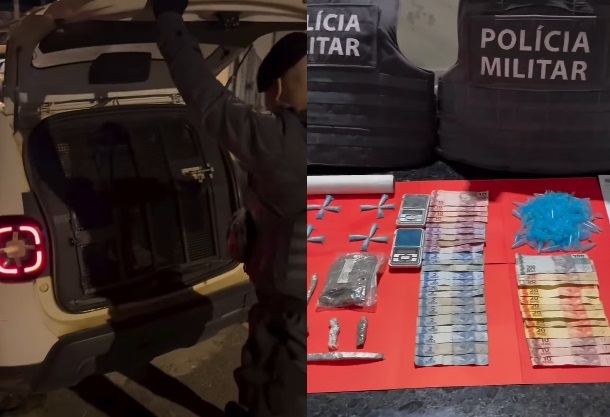 Receba as principais notícias no seu WhatsApp! clique aquiDe acordo com a PM, a equipe realizava policiamento ostensivo quando percebeu movimentação suspeita. Durante a abordagem, os militares encontraram porções de drogas prontas para a venda, além de quantia em dinheiro cuja origem não foi informada.