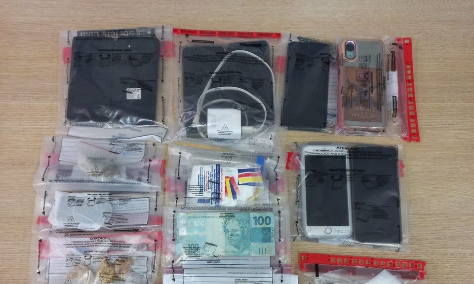 Nas diligências, os policiais localizaram porções de crack e maconha, uma balança de precisão, materiais utilizados no preparo e embalo de entorpecentes, além de diversos aparelhos celulares. Quatro homens também foram presos em flagrante pelos crimes de tráfico de drogas e receptação.