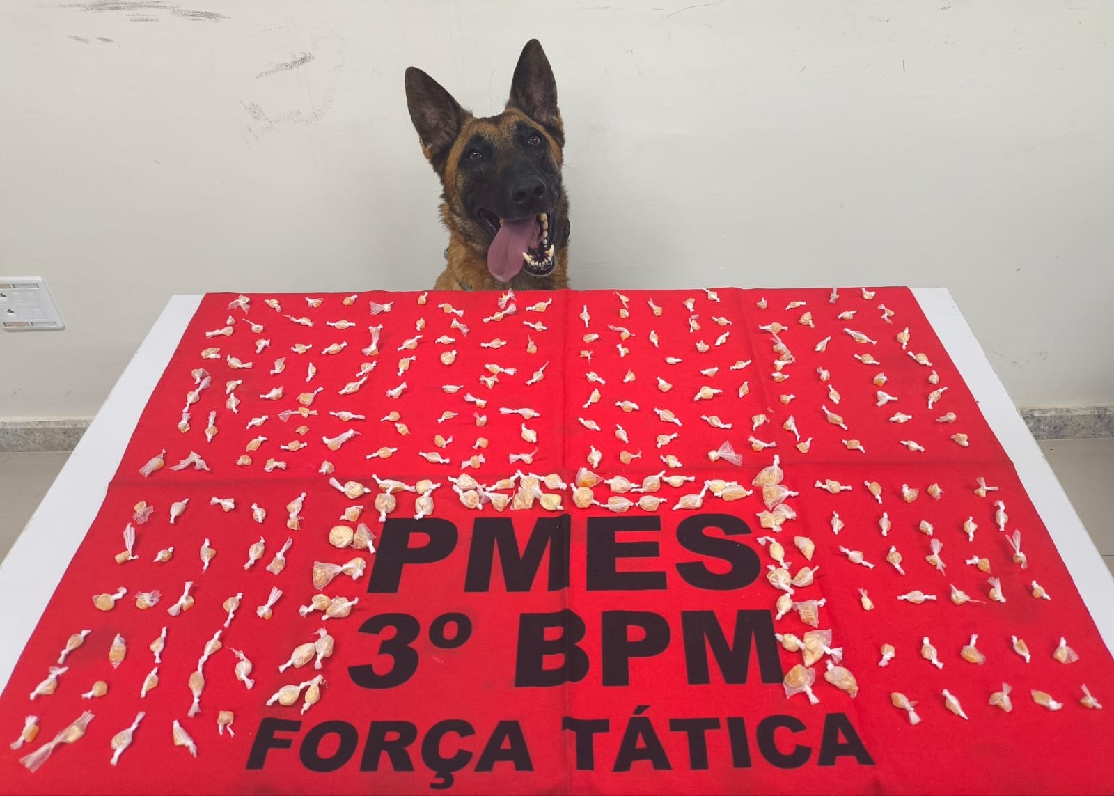 Uma operação realizada na tarde deste sábado (12) pela equipe K9 do 3º Batalhão da Polícia Militar resultou na apreensão de 249 pedras de crack no bairro São Miguel, também conhecido como Lagoa, em Guaçuí, na região do Caparaó.