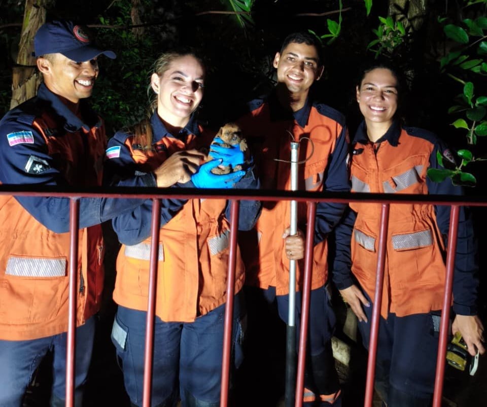 Na tarde desta segunda-feira (27), a equipe da 5ª Companhia Independente do Corpo de Bombeiros Militar do Espírito Santo (CBMES) realizou o resgate de uma filhote de aproximadamente 20 dias, que havia caído dentro de uma tubulação de drenagem no bairro Bicanga, em Serra. O cano, com mais de quatro metros de comprimento, impedia que o animal saísse sozinho.