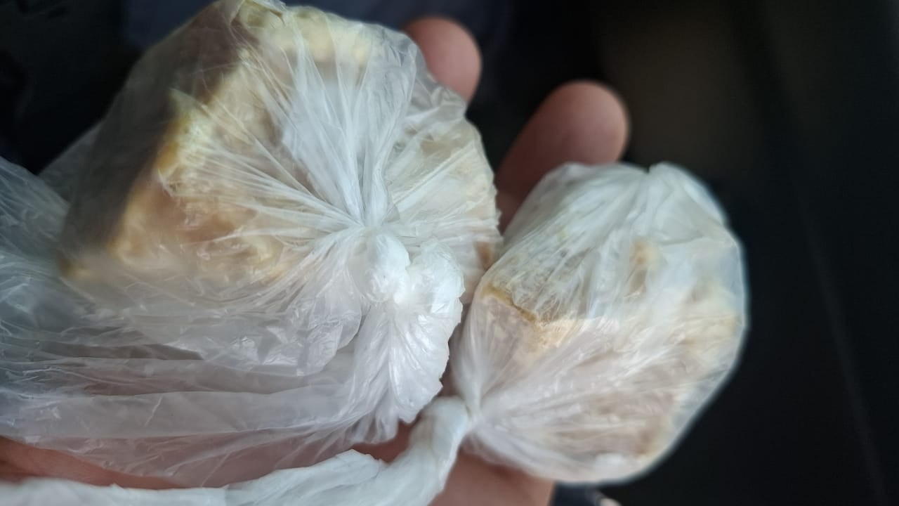 Mesmo após diversas ordens de parada, o suspeito continuou em fuga, sendo alcançado e imobilizado pelos policiais. Com o apoio de outras equipes, foi feita uma busca nas proximidades, onde os militares encontraram a sacola dispensada pelo homem. Dentro dela havia três pedras grandes de substância semelhante ao crack, totalizando aproximadamente 102 gramas.