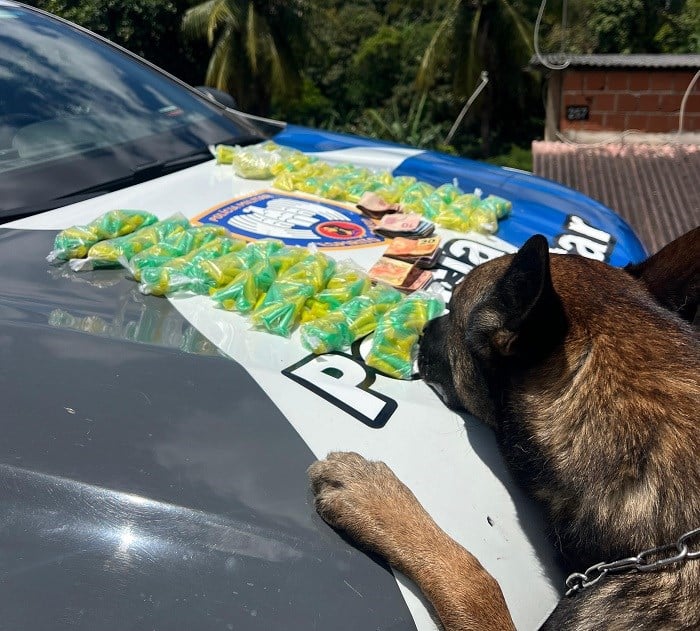 Os entorpecentes foram encontrados com a ajuda do cão policial Uthara, especializado em detecção de drogas. Outro cão, Pajé, também participou das buscas, que mobilizaram dez policiais militares em patrulhamento pela região.