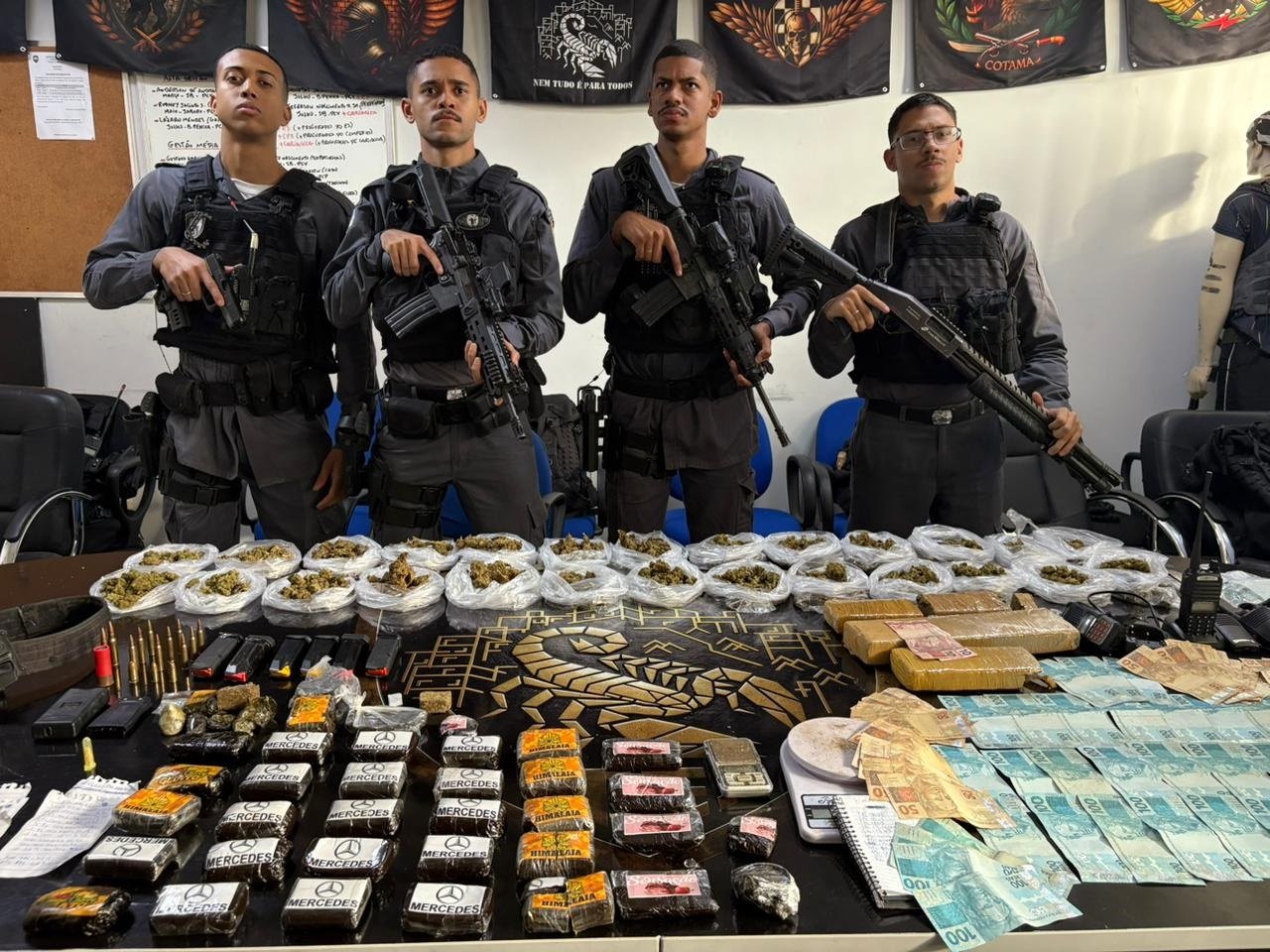 Policiais militares apreenderam haxixe, maconha, munições de diversos calibres e carregadores no Bairro da Penha, Vitória, na madrugada desta segunda-feira (13). Ninguém foi detido.