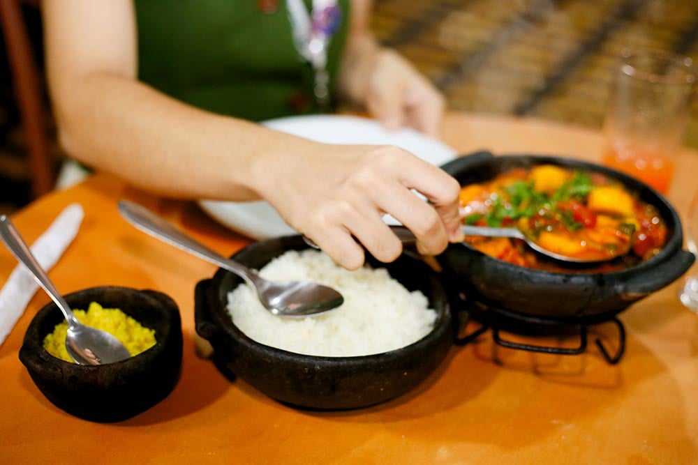 A culinária ocupa um papel central na experiência. O público tem acesso a um cardápio que celebra a diversidade e a riqueza gastronômica do Espírito Santo, com pratos elaborados para destacar cultura, sustentabilidade e identidade regional. É uma oportunidade de vivenciar sabores brasileiros em um ambiente que convida à troca e ao diálogo. Funcionamento a partir de 12h, junto a uma cafeteria que vai te surpreender.