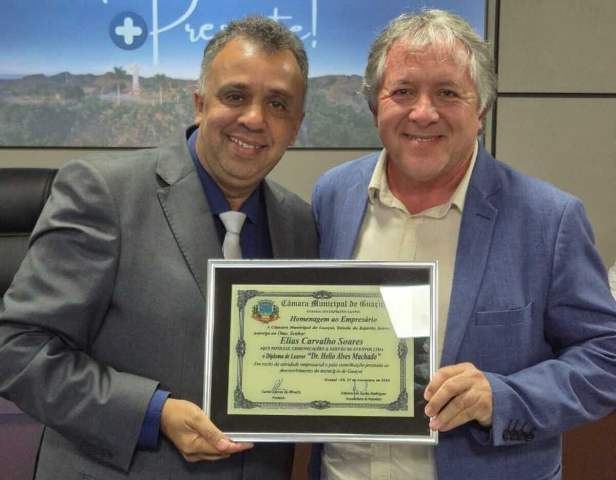 “Receber esta homenagem da Câmara Municipal de Guaçuí, após 23 anos de atuação contínua no setor de comunicação e eventos, representa um reconhecimento de grande importância. Ao longo dessa trajetória, buscamos exercer nosso papel com profissionalismo, responsabilidade social e compromisso permanente com o desenvolvimento do município”, afirmou Elias Carvalho.