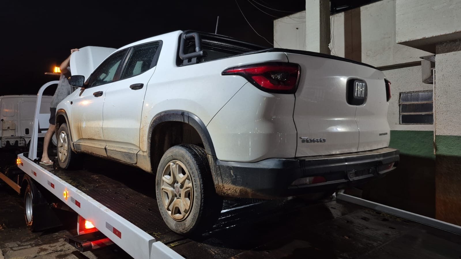 O Fiat Toro foi removido para o pátio credenciado do Detran.