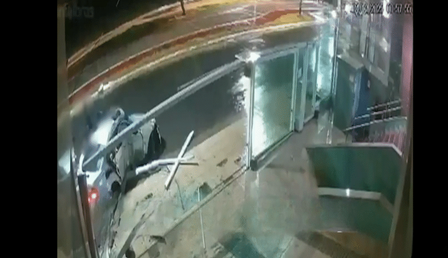 De acordo com a Polícia Militar, o motorista relatou que tentou desviar de um buraco, quando o veículo aquaplanou e bateu primeiro em um poste antes de atingir o edifício.