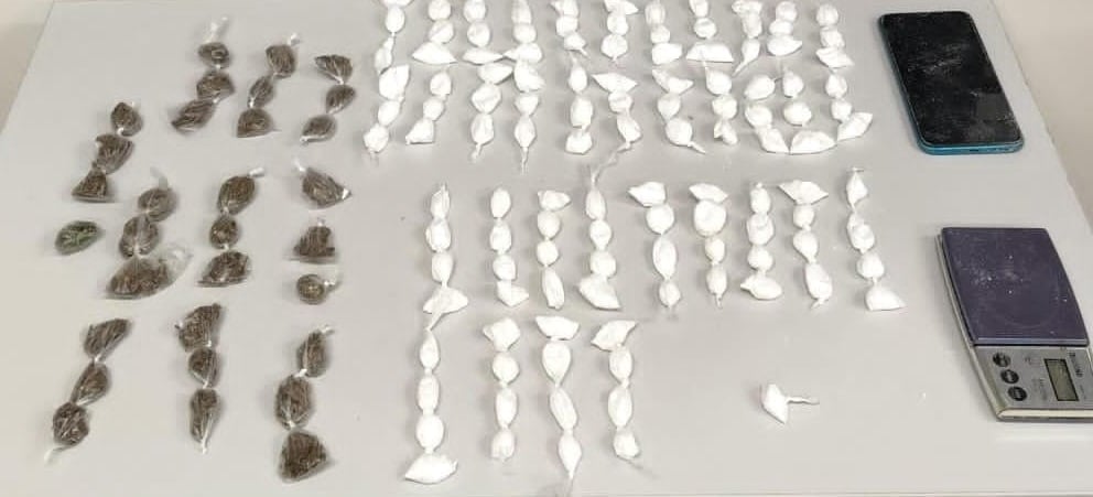 Durante as buscas, os militares localizaram 119 papelotes de cocaína, 31 buchas de maconha, uma balança de precisão e um celular Redmi azul. O material estava escondido próximo ao ponto citado na denúncia.