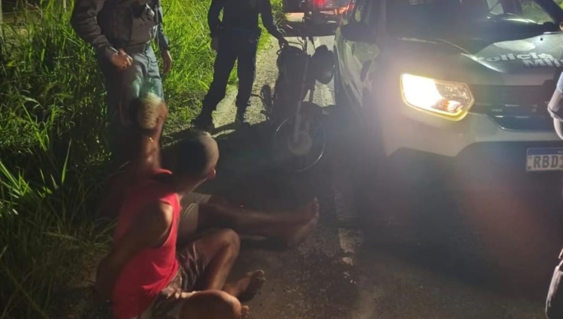 Durante patrulhamento, policiais militares flagraram dois ocupantes sem capacete em uma motocicleta Honda Titan preta. Em seguida, a equipe deu ordem de parada, porém os suspeitos ignoraram a determinação e fugiram pela rodovia.