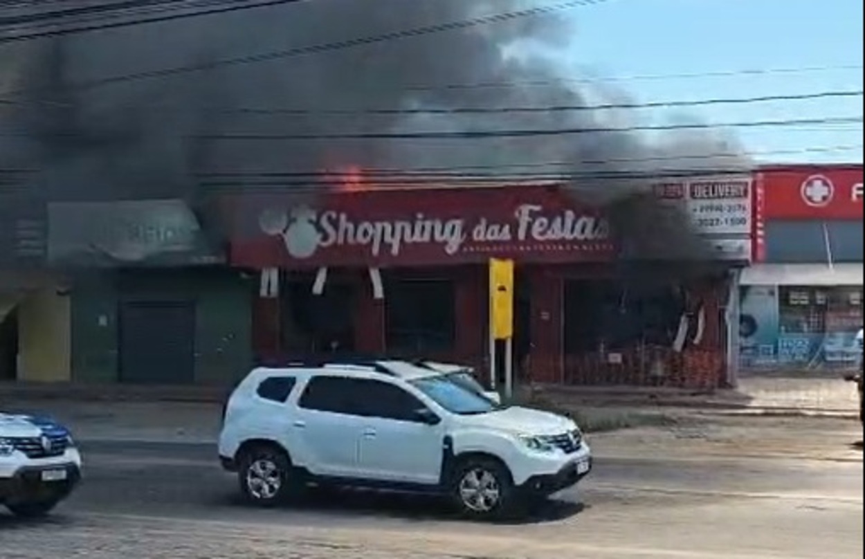 Um incêndio de grandes proporções atingiu um imóvel e estabelecimentos comerciais, entre eles, uma loja de utilidades para festas, nesta terça-feira (30), na Rua Raul Nassar, no bairro BNH de Baixo, em Cachoeiro de Itapemirim.