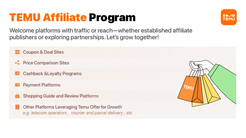 R: De sites e apps com tráfego até pessoas ativas em grupos de Facebook, a TEMU convida você a transformar sua influência em renda.
