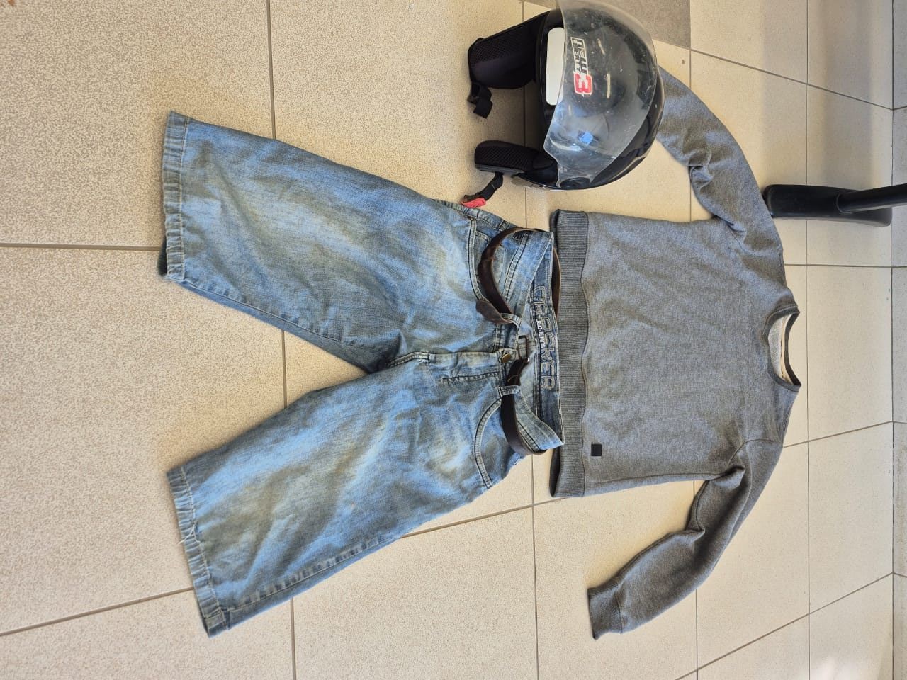 Após a prisão, os policiais apreenderam objetos usados no crime. Entre eles estão as vestes, o capacete e a motocicleta.