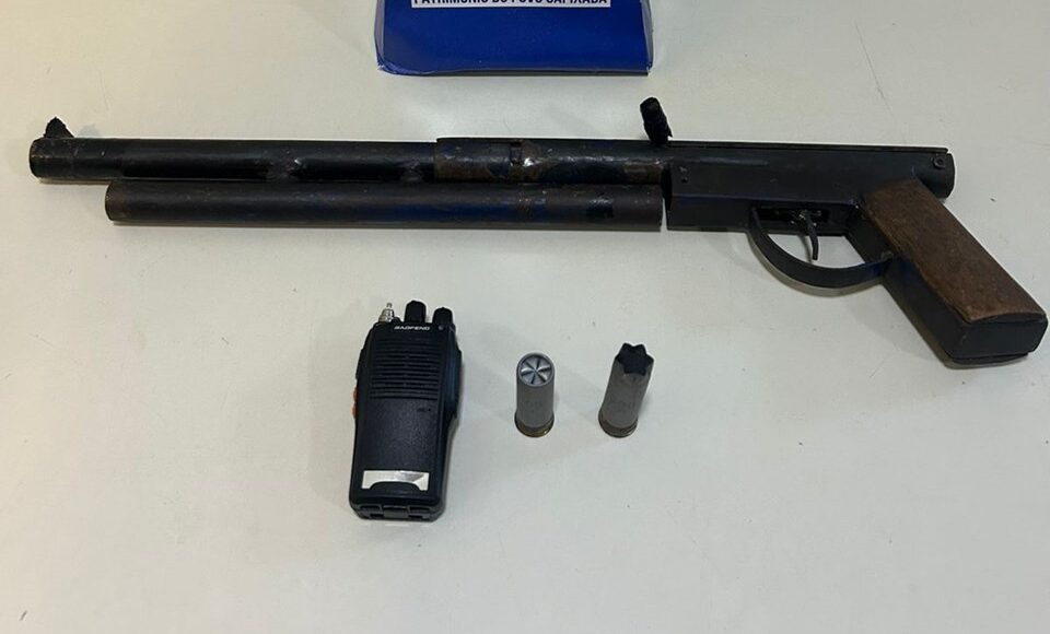 Apesar disso, os policiais apreenderam uma espingarda calibre 12 de fabricação semi-industrial. Além disso, recolheram uma munição intacta, uma deflagrada e um rádio comunicador.