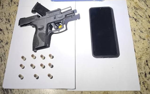 A polícia apreendeu uma pistola calibre 9 mm com nove munições intactas. Os agentes também removeram a motocicleta sem registro para o pátio credenciado do Detran. A Polícia Civil investiga o caso.