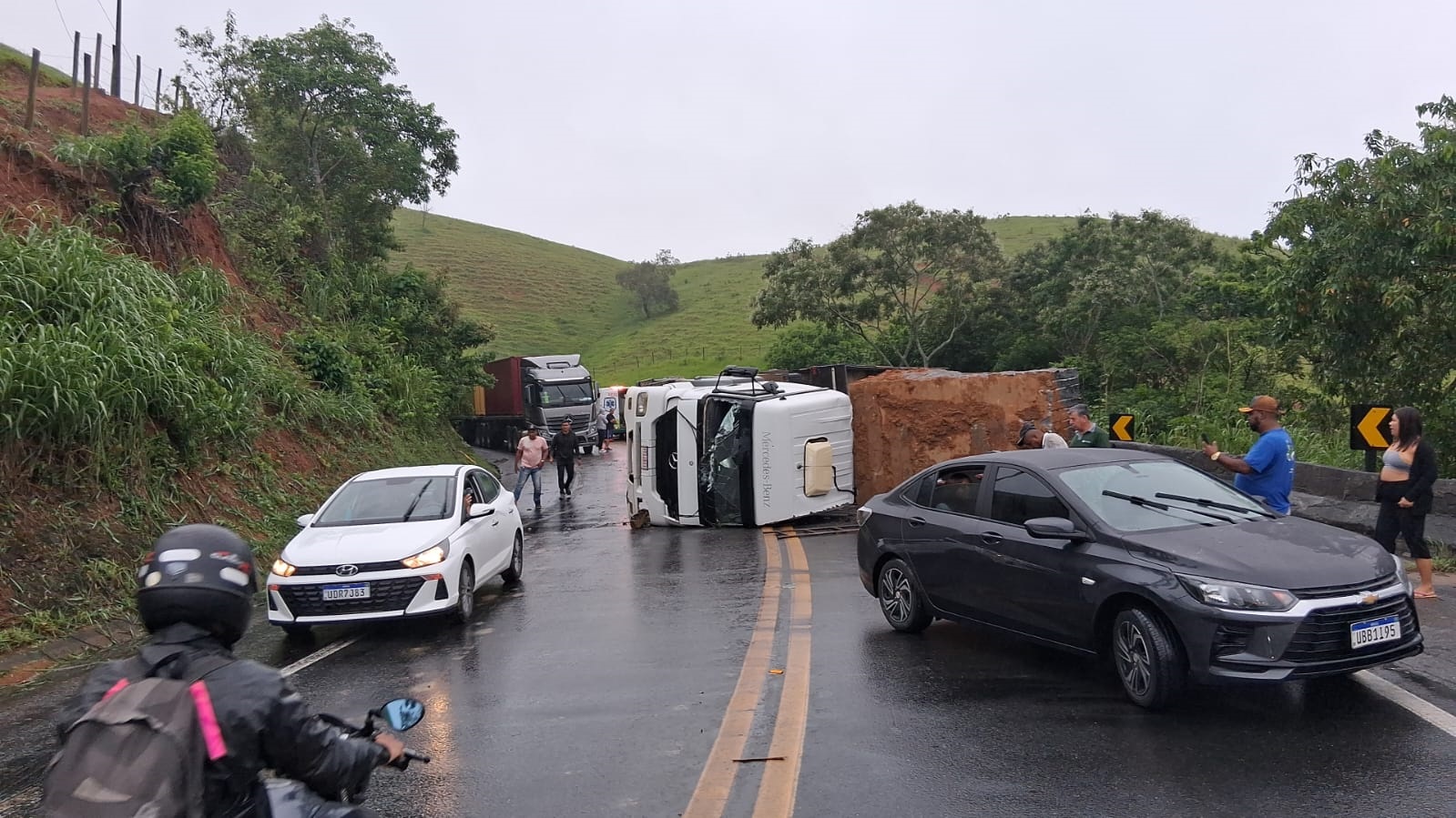Um acidente grave na manhã desta sexta-feira (23), em Rio Novo do Sul, provocou a interdição total da rodovia no km 388, na localidade de Capim Angola. A colisão envolveu uma carreta carregada com um bloco de granito, um caminhão e uma motocicleta, o que interrompeu completamente o tráfego.
