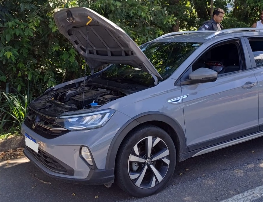 Durante a fiscalização, os agentes pararam um VW Nivus cinza, conduzido por um homem de 31 anos, natural de Minas Gerais. A equipe iniciou a verificação dos sinais identificadores.