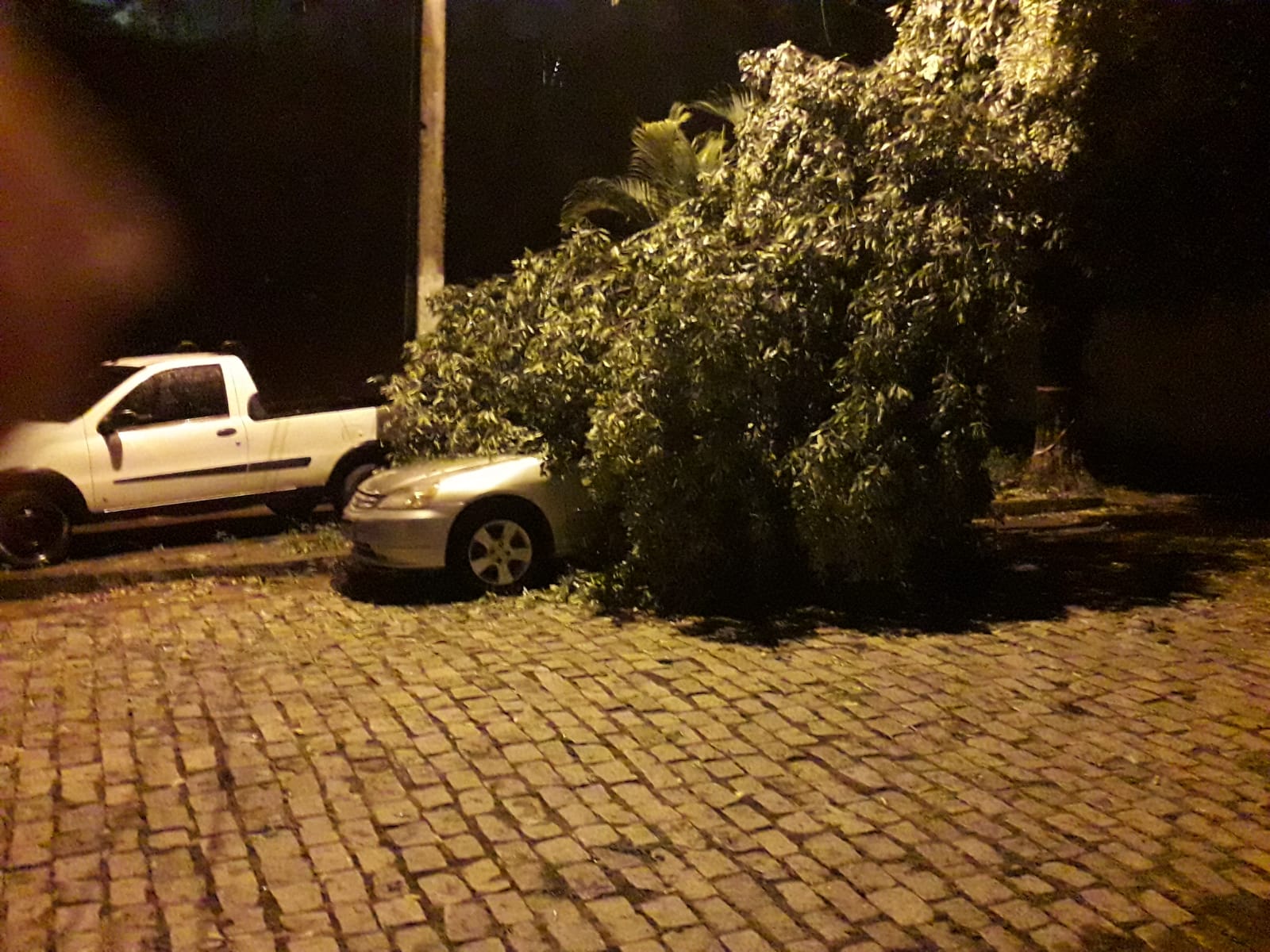 Queda de árvores após chuva intensa danificou veículos, mas não deixou feridos no município.