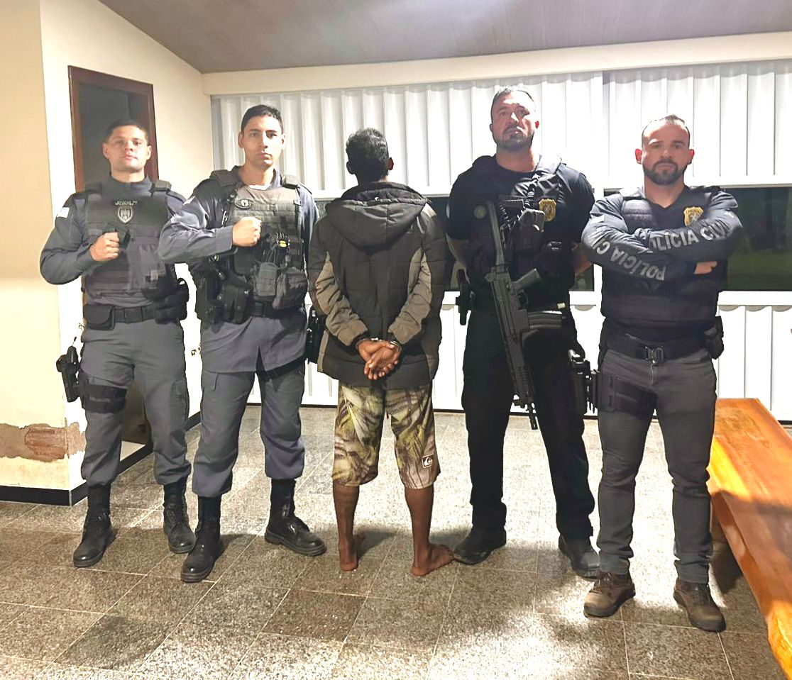 Trabalho conjunto entre Polícia Civil e Polícia Militar resulta em captura rápida do suspeito.
