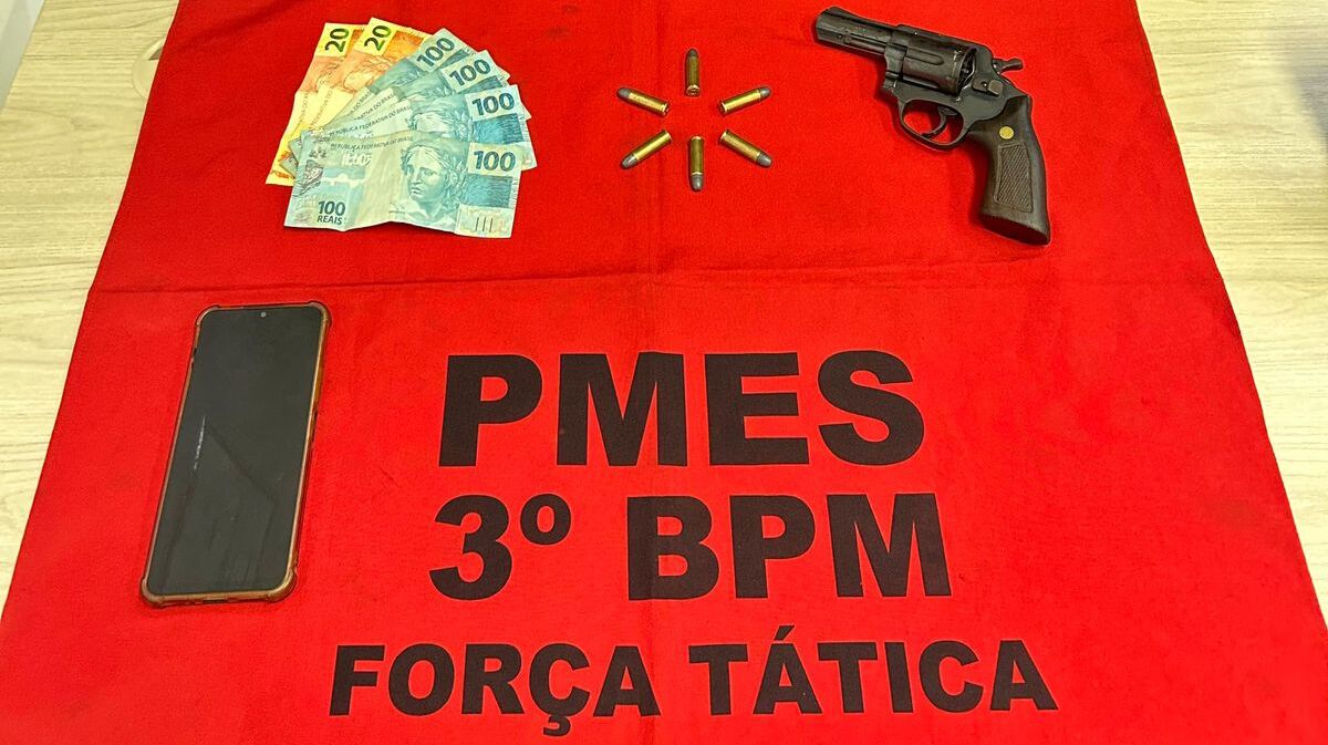 A equipe realizou a abordagem. Durante a revista, encontrou R$ 440 e um celular. Questionado, o homem admitiu que havia escondido um revólver calibre .38 em seu quarto. Os policiais entraram no imóvel e localizaram a arma com seis munições intactas.