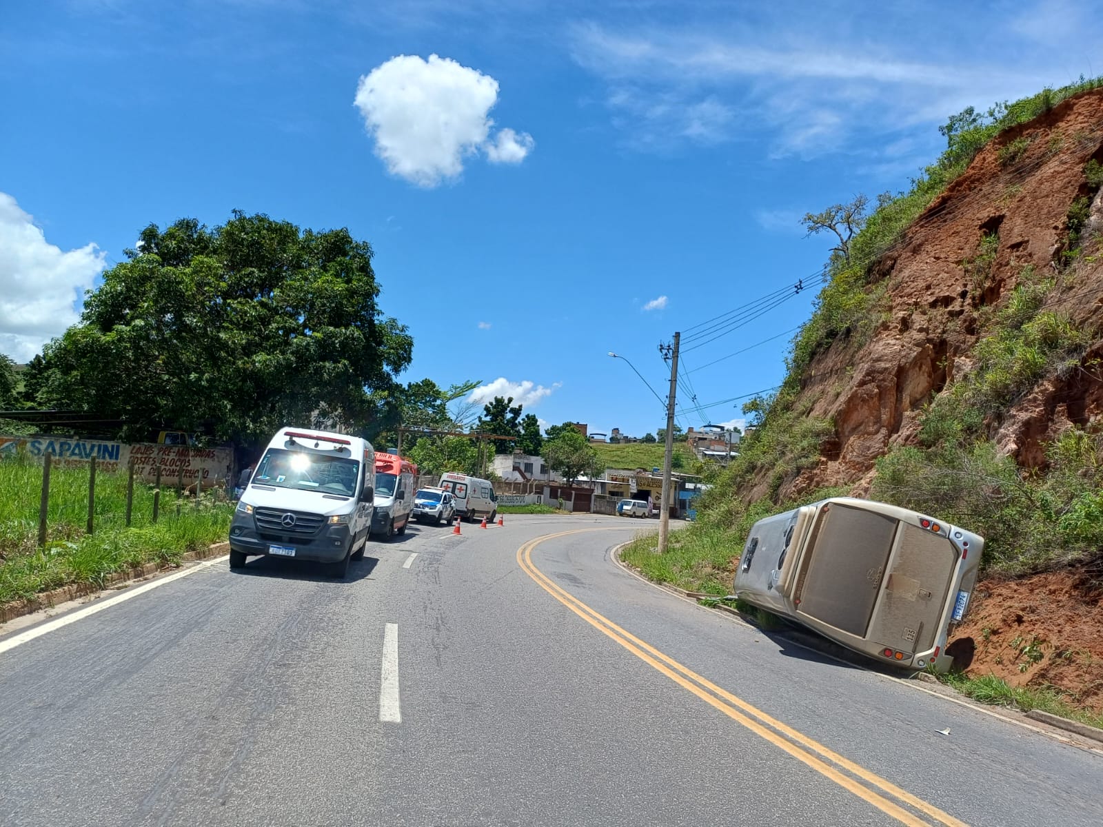 Micro-ônibus perde freio, tomba e deixa feridos na BR 482 em Alegre