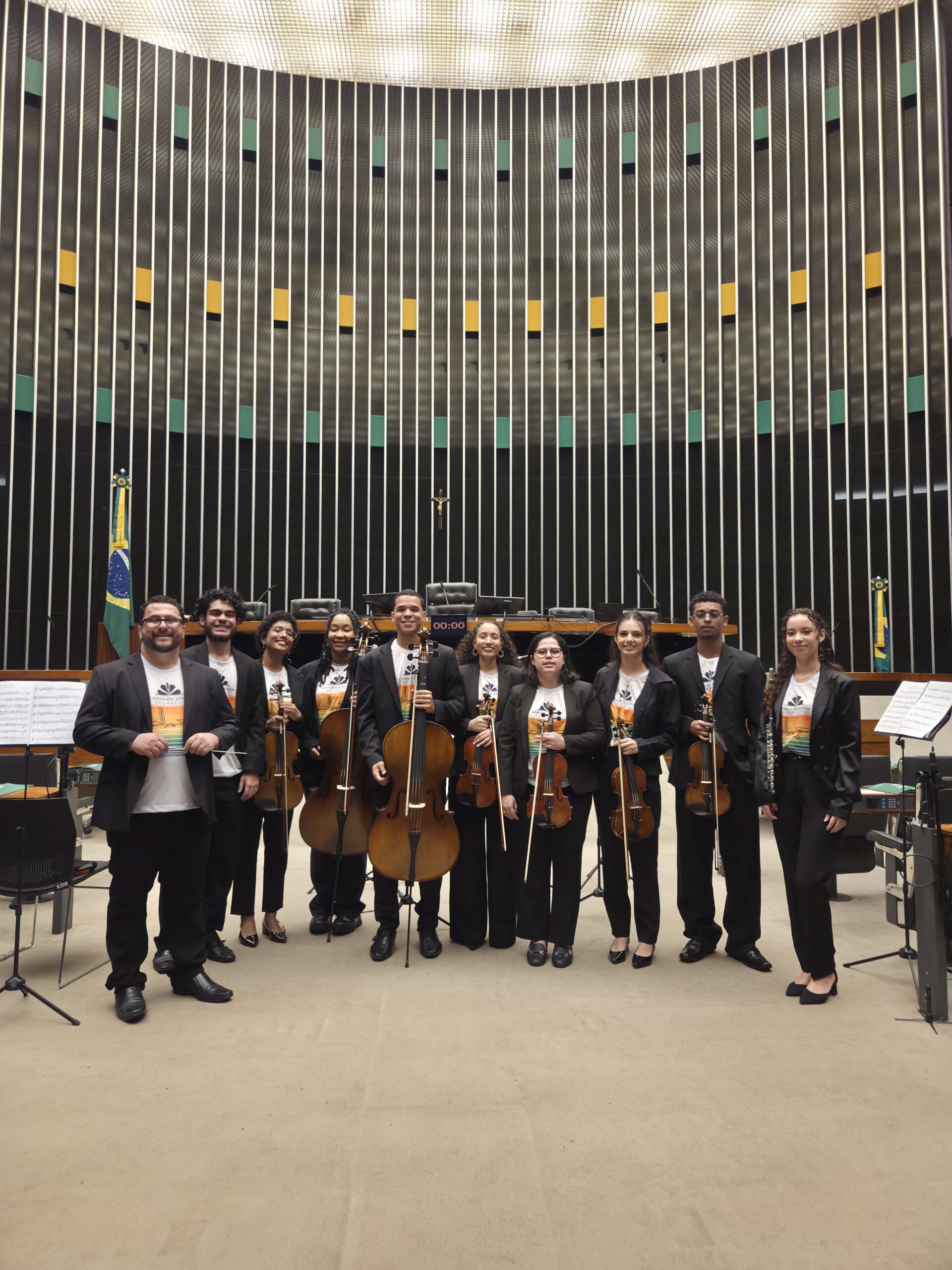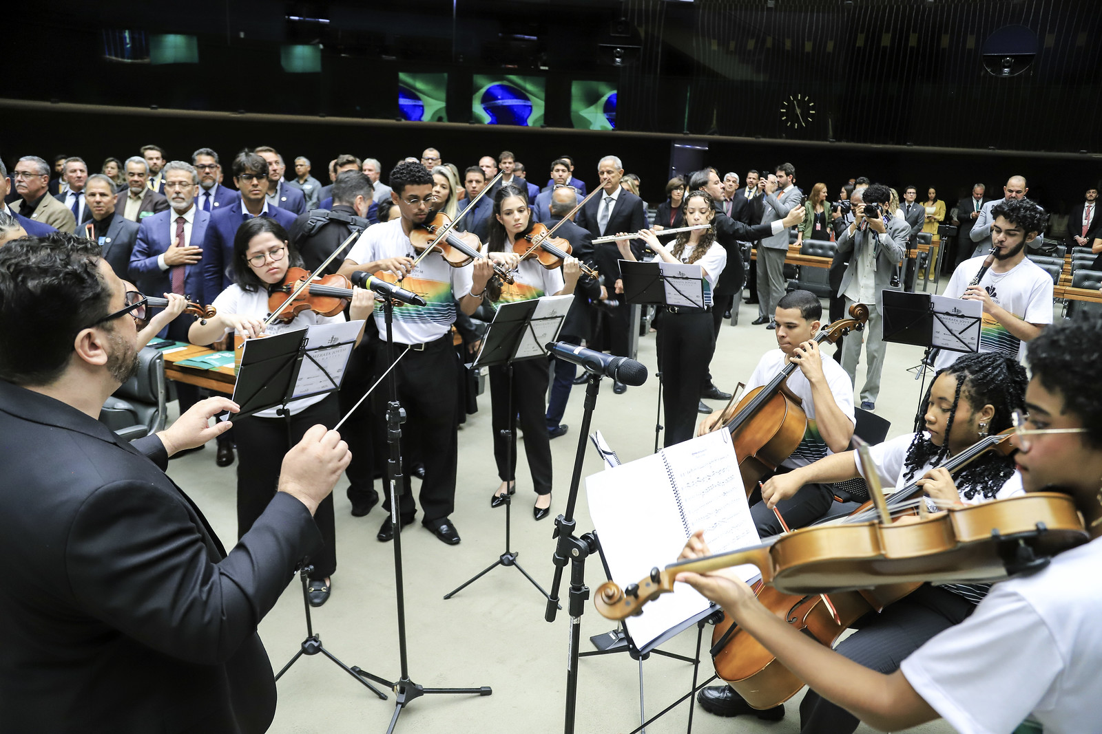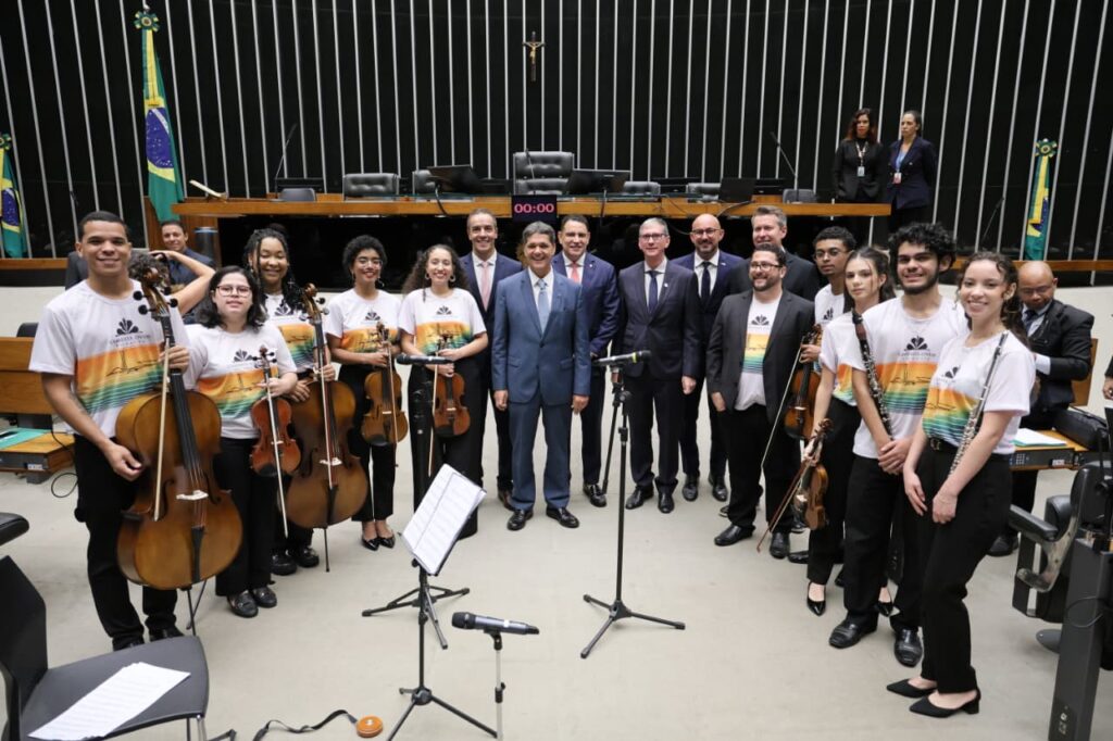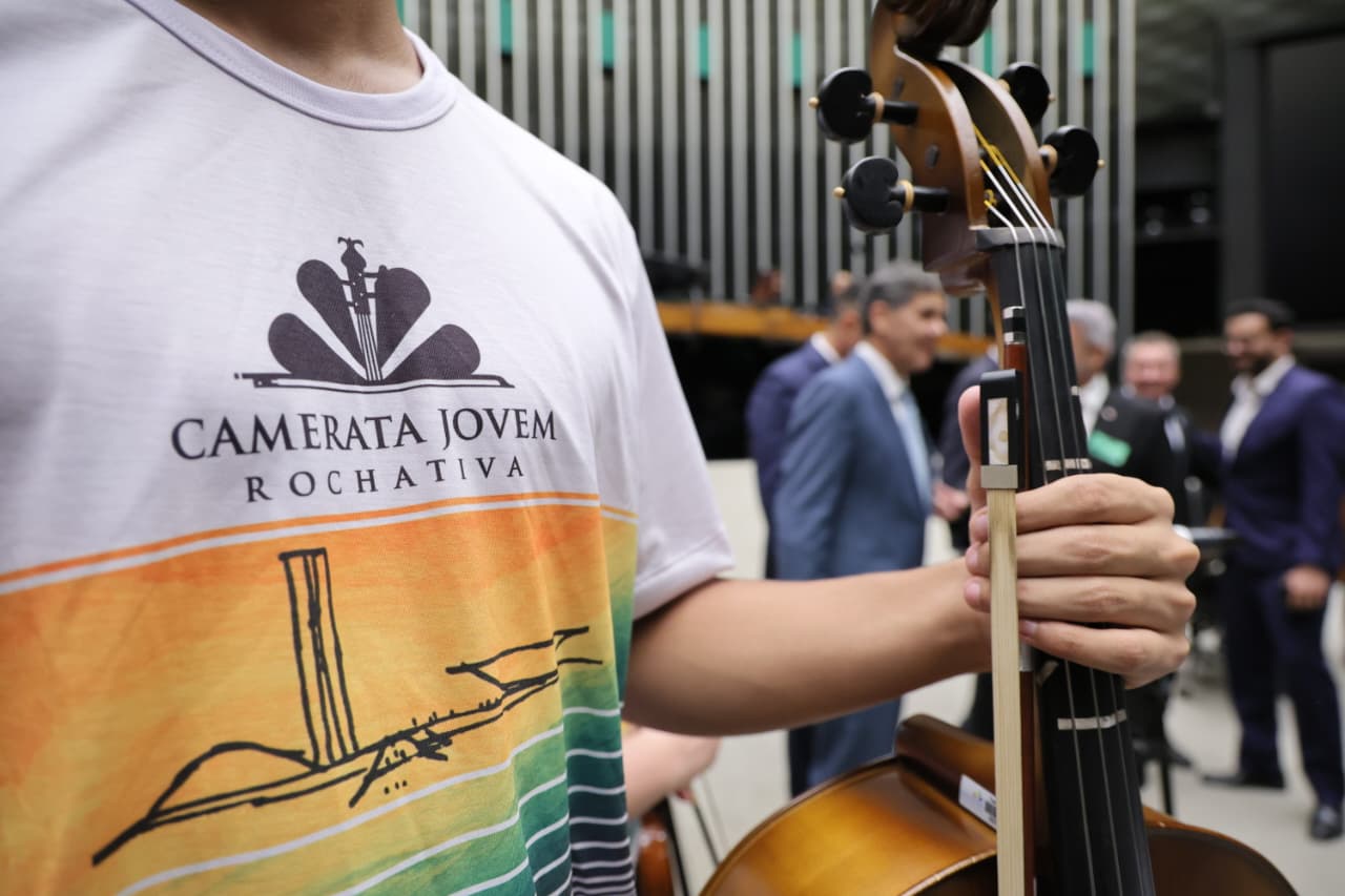 Na sequência, os jovens da Camerata Jovem Rochativa interpretaram o hino no plenário. O projeto, por sua vez, desenvolve formação musical voltada a crianças e adolescentes.