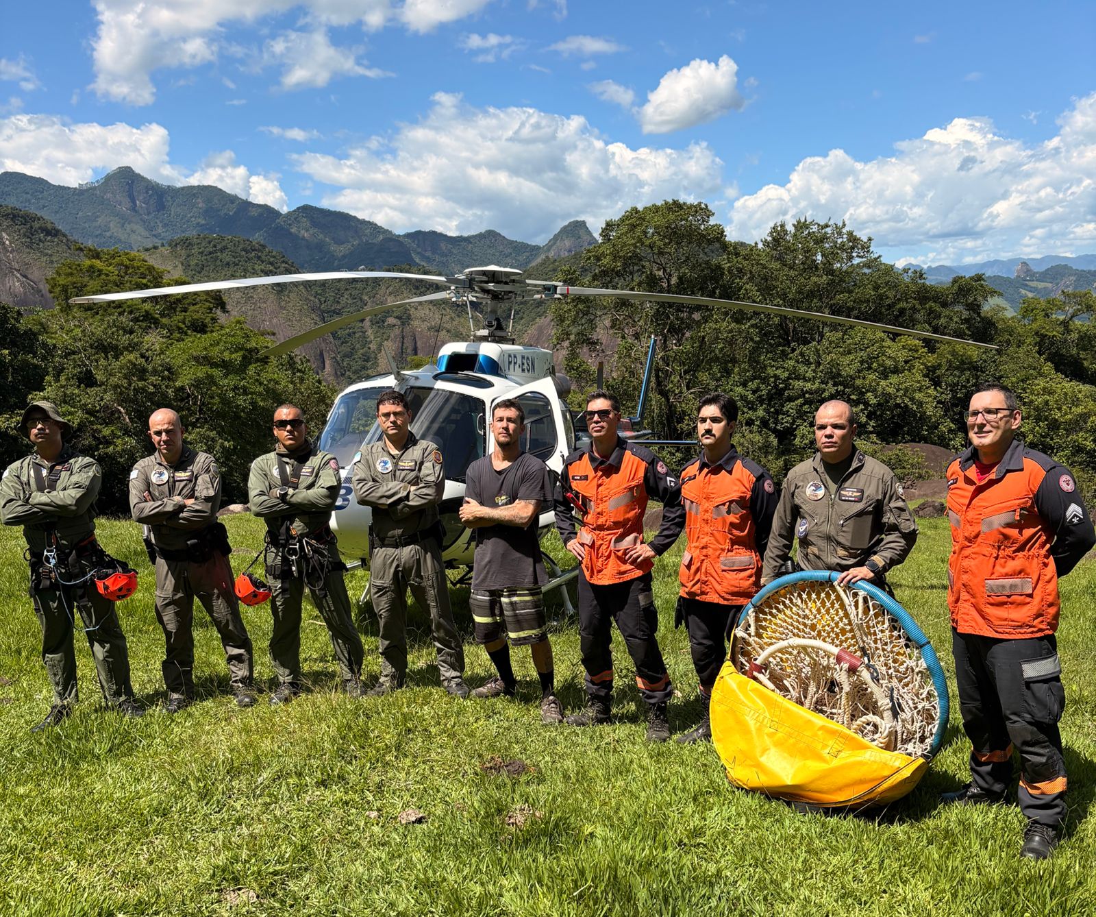 Para executar o resgate aéreo em Castelo, a equipe utilizou a técnica de salvamento com cesto suspenso por cabo de 63 metros. A aeronave posicionou-se acima da copa das árvores, enquanto um operador desceu cuidadosamente até o ponto onde a vítima se encontrava.