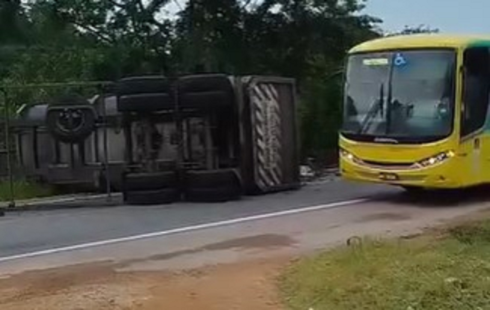 Receba as principais notícias no seu WhatsApp! clique aquiSegundo as informações iniciais, o segundo complemento de uma carreta tombou sobre a pista. Apesar do impacto, as equipes não registraram vítimas.