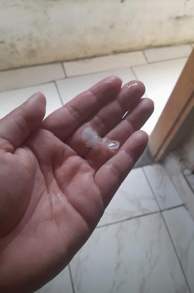 Chegada de frente fria provoca chuva intensa, ventos fortes e queda de granizo na localidade de Fruteiras, no município de Vargem Alta.
