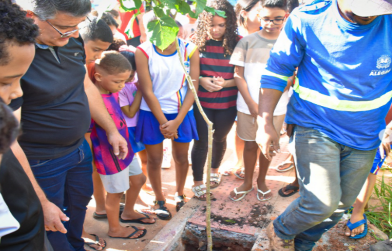 Com presença do prefeito Nirrô, estudantes fazem plantio de árvores em ruas de Alegre