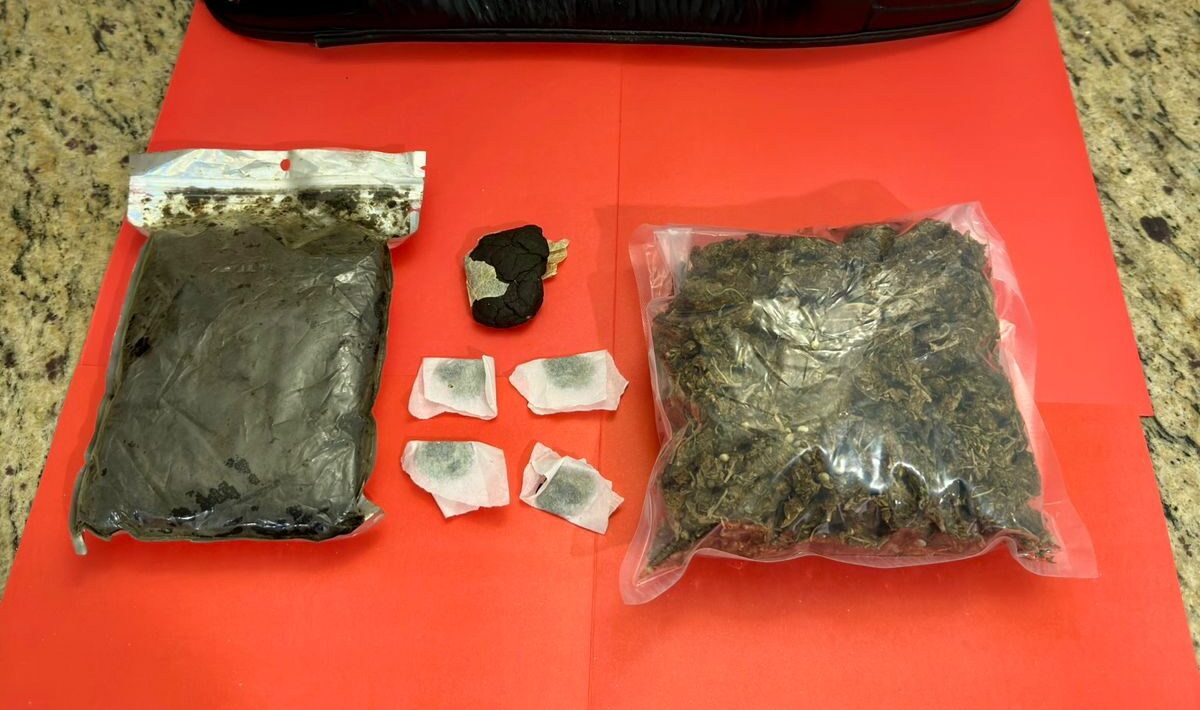 Durante a abordagem, os agentes encontraram os seguintes materiais: embalagens contendo 445g de pak, 20g de pak, 3,54g de pak e 190g de skunk (cannabis de alta potência)